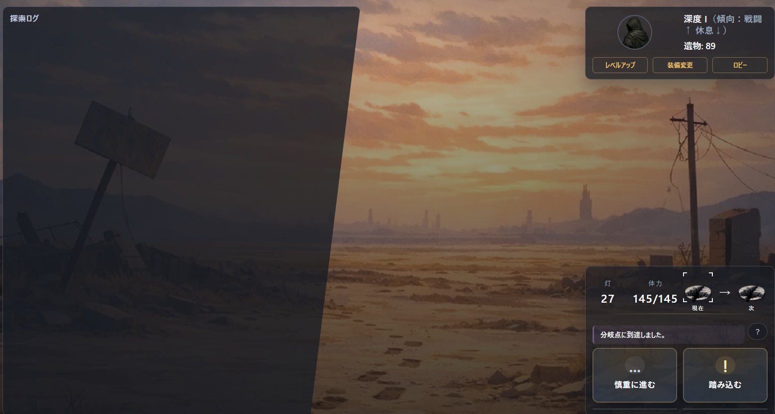 探索には灯(AP)を消費します。灯はログイン時にまとめて回復します。